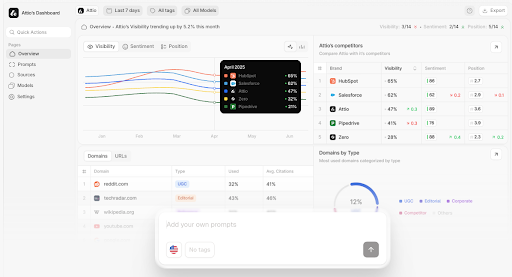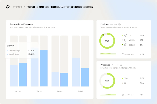 - Analyse concurrentielle : Comparez votre part de voix IA avec jusqu’à 6 concurrents.